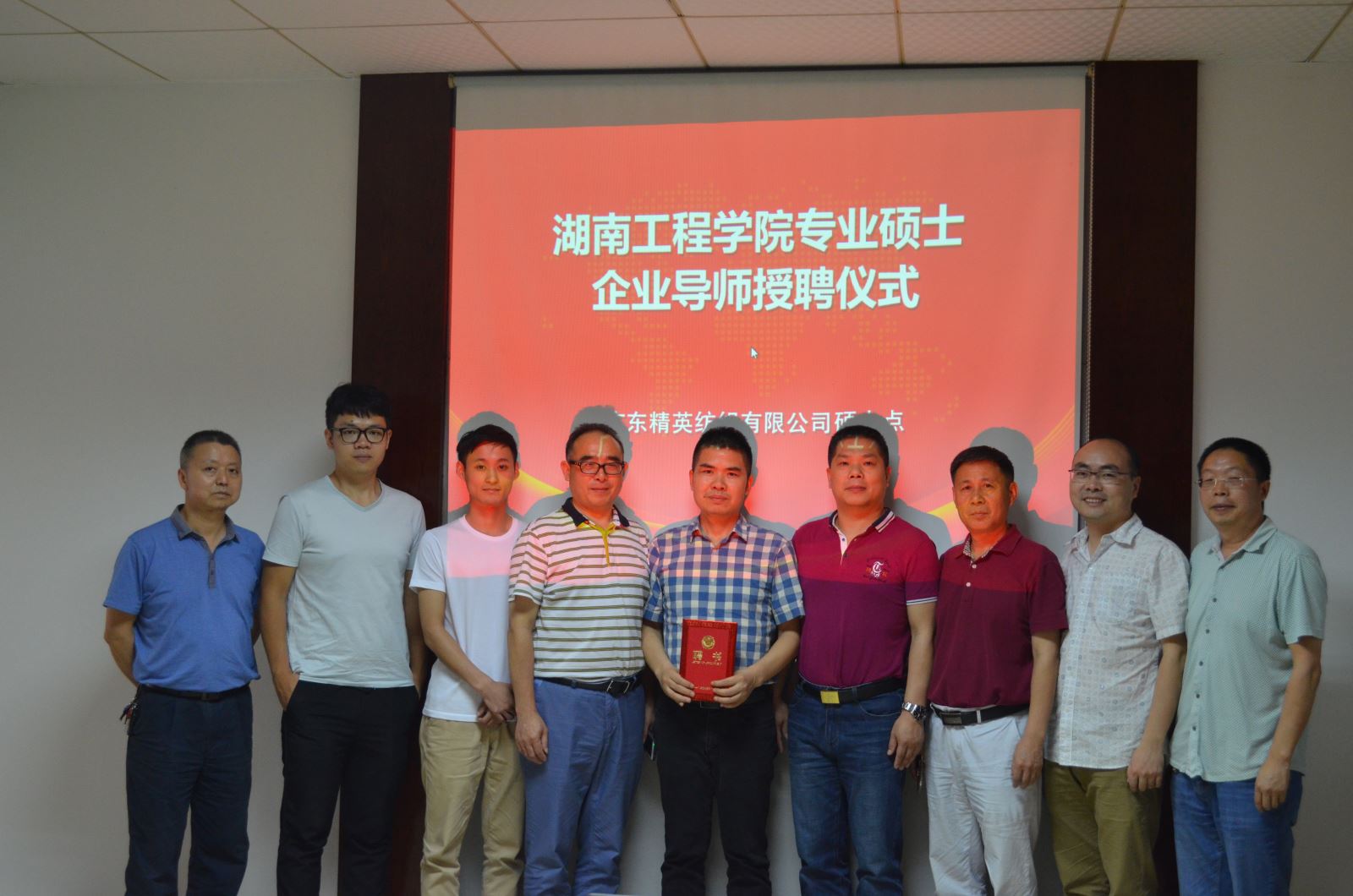 2017年5月19日,受公司委托,化学化工公司经理邓继勇、书记胡爱钦、轻化工程教研室主任陈镇及硕士生导师翦育林教授一行四人来到广东肇庆,代表必一运动公司研究生处向公司87届优秀员工——现广东精英纺织有限公司董事长彭太平先生颁发硕士导师聘书,正式聘请彭太平为公司纺织工程专业硕士研究生企业导师。