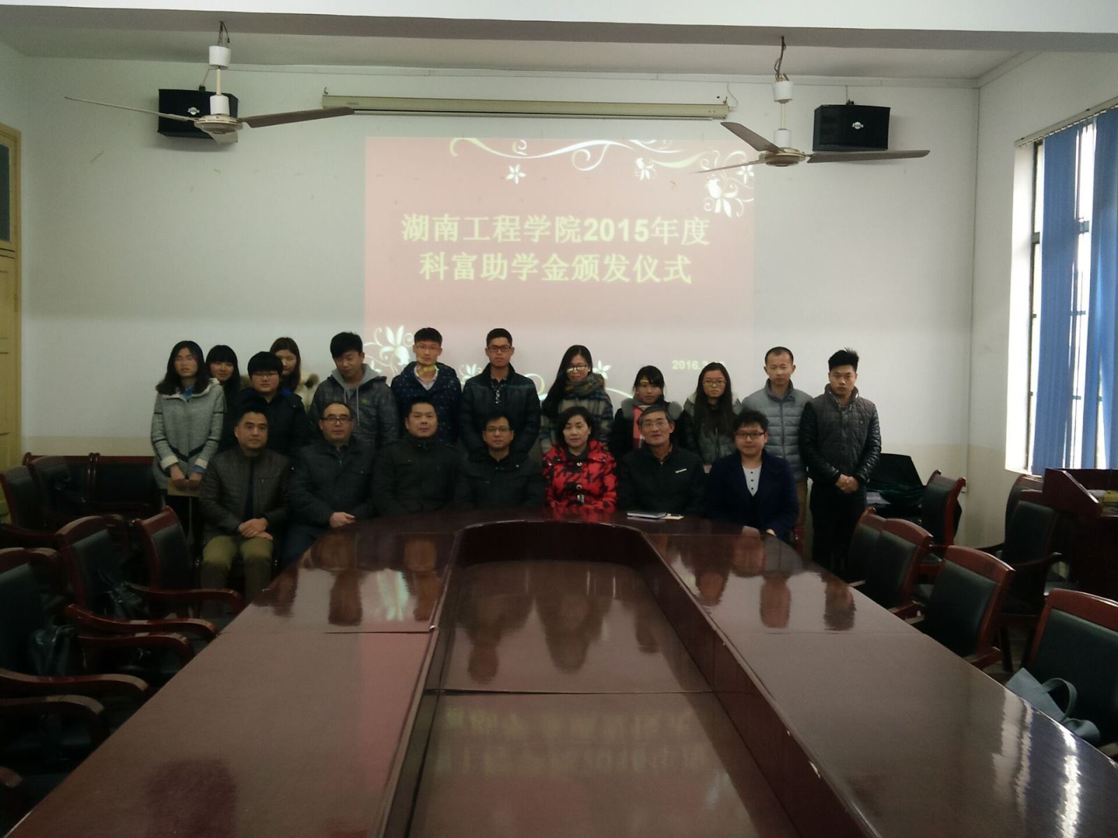 3月10日下午4点,化学化工公司在四教306举行了2015年度科富助学金颁发仪式。仪式由化工公司党总支副书记张建国主持,广东佛山科富科技股份有限公司总经理袁建新、化学化工公司经理邓继勇、党总支书记胡爱钦、党总支副书记张建国、专业教师代表易翔等出席颁奖仪式。