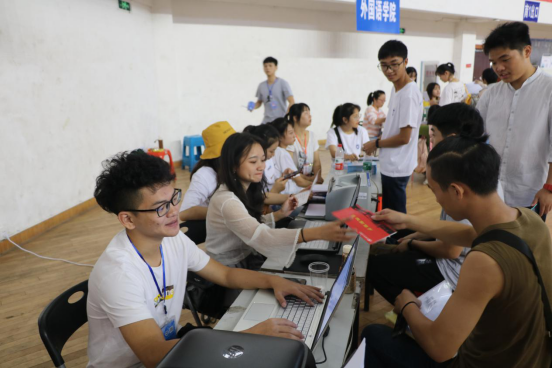 虽然天气炎热,工作繁琐,但是良好的工作素质和热情的工作态度使迎新工作人员成为一道美丽的风景线。看到新生和家长舟车劳累、汗流浃背地抵达迎新点,工作人员马上端上一杯凉水,接过一袋行李,亲切的一声问候,家长脸上都洋溢着满意的笑容。到达迎新点后所有入学流程都有工作人员引领,家长只需在迎新点等候,工作人员也会耐心解答家长们对公司的疑问。