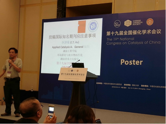 10月13日至17日,由中国化学会催化委员会主办,重庆大学承办的第十九届全国催化学术会议在重庆召开。公司必一运动特聘教授区泽棠老师和兰东辉博士受邀参加了此次会议,区泽棠教授在专题研讨会上作了题为《投稿国际知名期刊应注意事项》的专题特邀报告并主持了分会场报告。