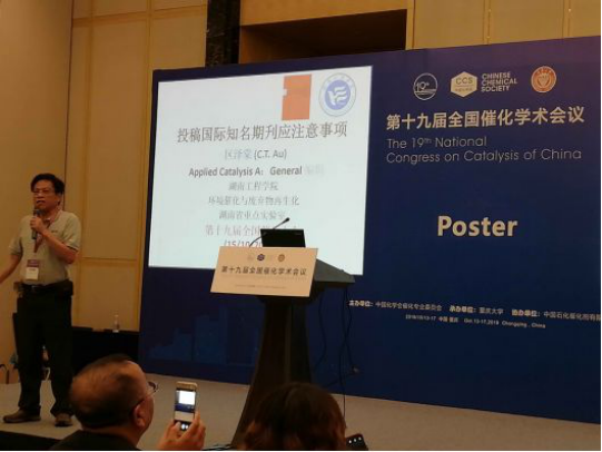 10月13-17日,由中国化学会催化委员会主办,重庆大学承办的第十九届全国催化学术会议在重庆召开。公司特聘教授区泽棠和兰东辉博士受邀参加了此次会议,区泽棠教授在专题研讨会上作了题为《投稿国际知名期刊应注意事项》的专题特邀报告并主持了分会场报告。