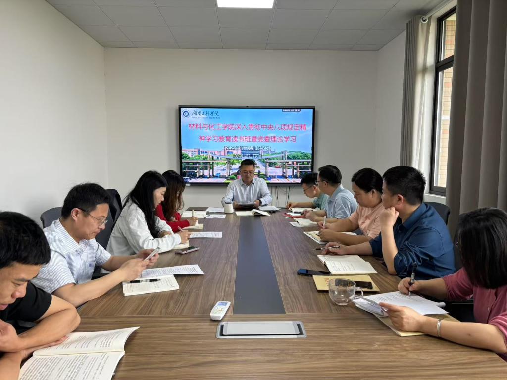 2025年4月10日,院党委深入贯彻中央八项规定精神学习教育读书班暨党委理论学习中心组2025年第三次学习在新材化楼A-318举行,由党委书记徐粤宇主持,党委理论学习中心组成员、党支部书记参加。