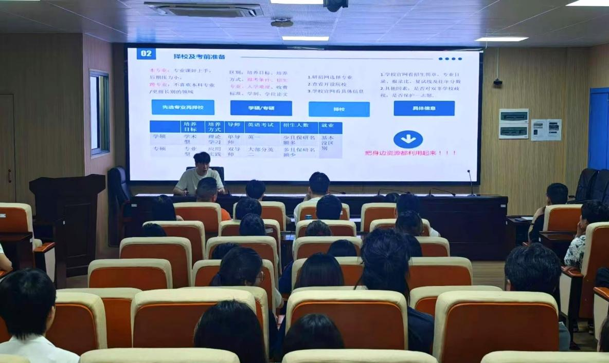 会上,六位主讲人结合自身备考经历,围绕三大核心议题展开系统讲解:在择校策略方面,建议综合评估个人基础、院校报录比及地域资源,优先选择与自身匹配度高的院校;在学科复习方面,针对数学、英语、政治及专业课,重点解析知识框架构建、真题解析方法与阶段复习规划;在心态调节方面,推荐通过运动锻炼、学习任务分解等方式缓解压力,强调保持稳定心态的重要性。分享过程中,每位主讲人还结合具体案例给出针对性建议,并在结束时为学弟学妹送上考研祝福。