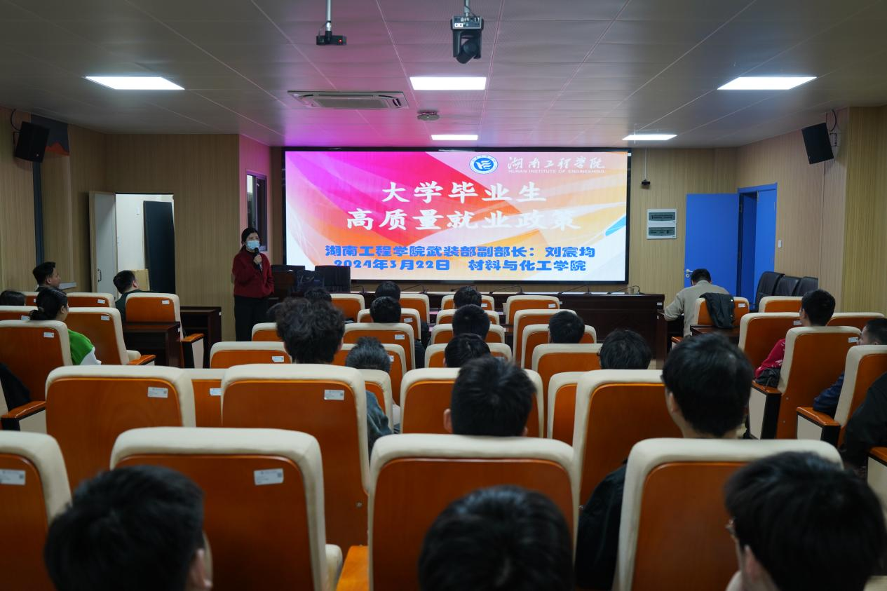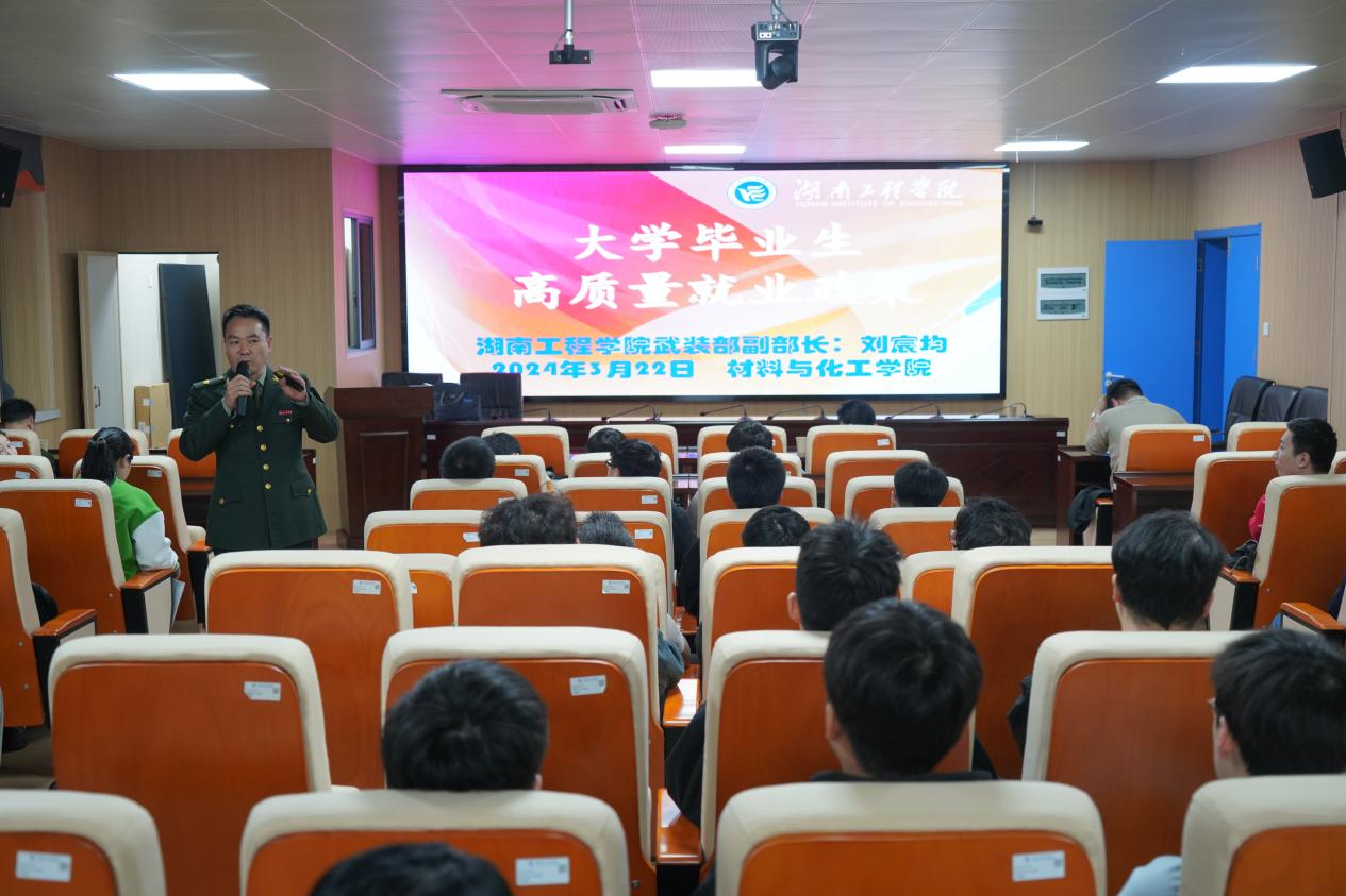 刘宸均为同学们详细解读了兵役义务与老员工应征入伍政策,重点介绍了高校老员工应征入伍的优惠政策,并就同学们关心的事项进行了解答。“近年来,中国国防力量在不断的强大,中国航天和军事取得了重大成就。老员工征兵入伍既是国家发展的需要,也是老员工实现人生价值的需要”。他表示,大学毕业生参军入伍是锤炼坚韧意志、涵养高尚品格、提升个人素质、锻炼强健体魄的高质量就业,同学们应把个人理想融入党和国家事业当中,在部队练就“钢筋铁骨”、铸就“铁血军魂”,把热血挥洒在实现强军梦的伟大实践之中,为祖国的国防事业贡献青春力量。