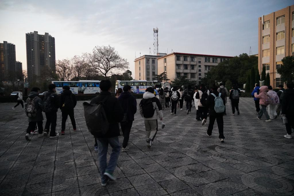 12月23日清晨6点40分,东方破晓,大地寒霜。主校区(北)红楼前,三辆开满暖气的爱心送考大巴已停靠在预定位置。公司副书记罗荃、辅导员王祥若和员工志愿者早早等候在这里,随着乘车的考研学子陆续到达,现场工作人员开始忙碌起来。经过细心组织信息核对、提醒检查考试物品和引导乘车,150余名追梦少年根据公司为他们精心定制的送考路线奔赴湘潭市内五个考点,迎接他们备战已久的2024年全国硕士研究生招生考试。