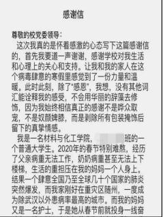 3月5日,公司应用化学12级员工朱思昊(湖南汇虹制剂有限公司)向公司捐赠消液、过氧乙酸及酒精等消毒物资共计2.4吨,助力公司公共场所消毒、共同抗击疫情。