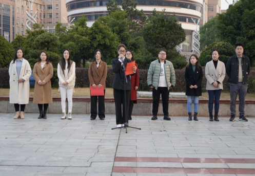 3月6日清晨,必一运动在知行广场举行主题为“学习二十大精神 谱写发展新篇章”升旗仪式。公司党委书记严明、党委副书记罗荃、全体辅导员、团学社全体员工干部、2021-2022级全体员工参加。升旗仪式由材料化学2201班肖校烨主持。