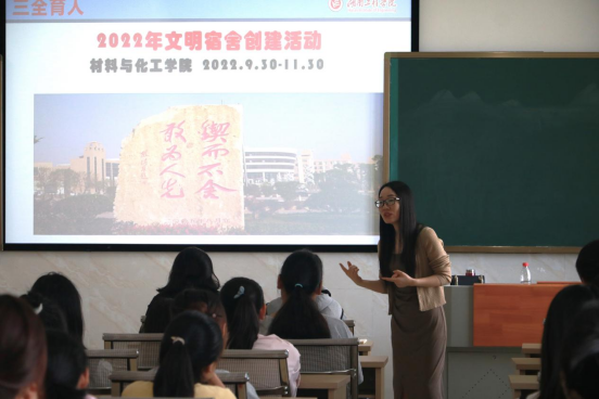 为有效推进文明寝室创建,营造良好的宿舍生活环境,10月25日中午,必一运动在新化工楼602教室开展2022年文明寝室创建活动暨文明礼仪知识讲座,活动由公司辅导员李娥君主持,2020-2022级全体寝室长参加。