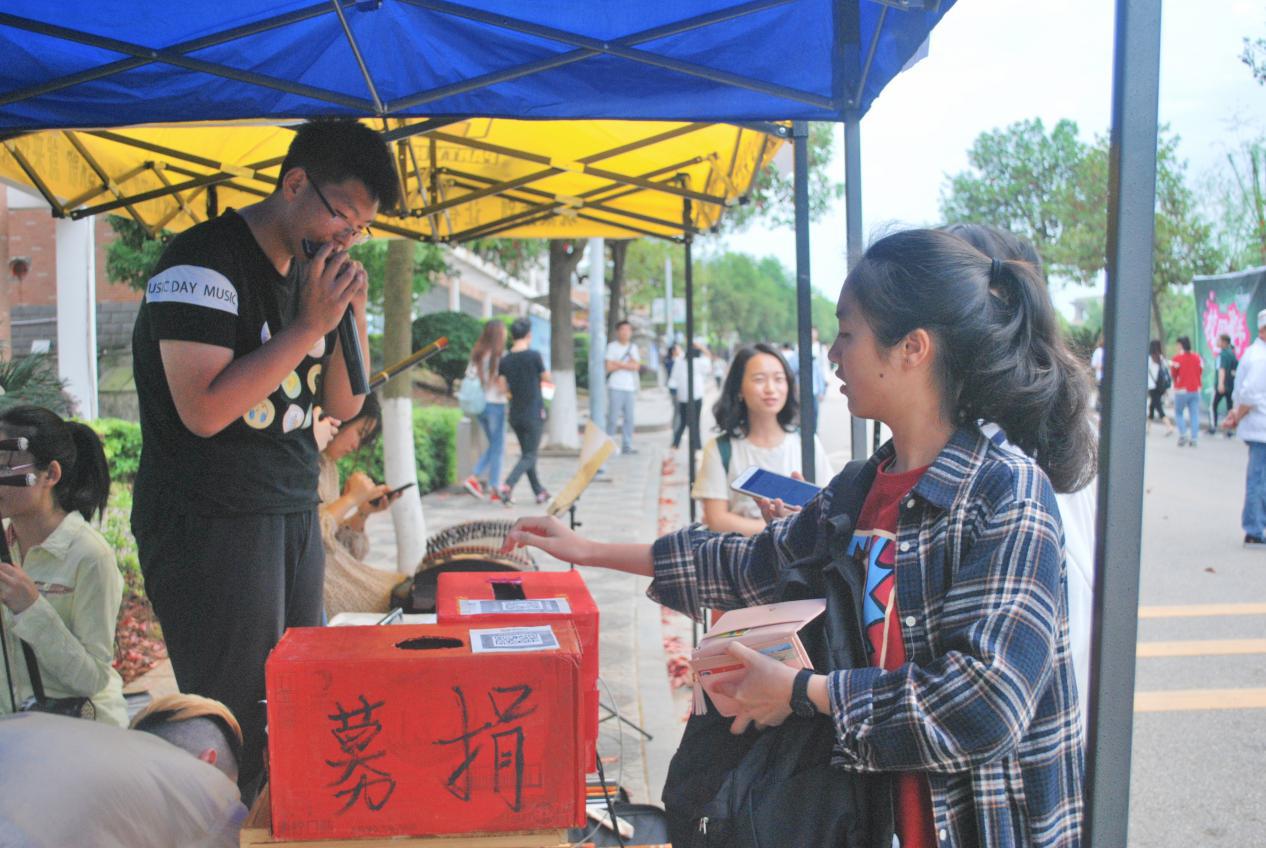 以声传情,以情动人。明德街角,我们吹笛鸣萧、拨弦奏琴,悠悠乐声,直抵心灵;木鱼湖畔,我们弹唱民谣、击鼓怡情,人景合一,画面如诗;学海树荫下,我们动情歌唱青春热血,用歌声传递心底的炙热,传递爱。两天的活动吸引了一大批同学驻足咨询。在爱心社干事的耐心讲解下,同学们了解到“一元捐”能帮助到希望工程的孩子们,并积极捐款,有的豪掷重金,有的捐了仍然愿意慷慨解囊,还有的号召同伴一起捐款。同学们小小的举动,却有着大大的温暖,令人动容。经过大家共同的努力,最终此次“一元捐”爱心义演活动共募得善款1942.51元。所募善款将通过化学化工公司团总支全数上缴至湘潭市希望工程促进会,市希望工程促进会汇集后统一上缴省青基会“希望工程一元捐助学基金”。