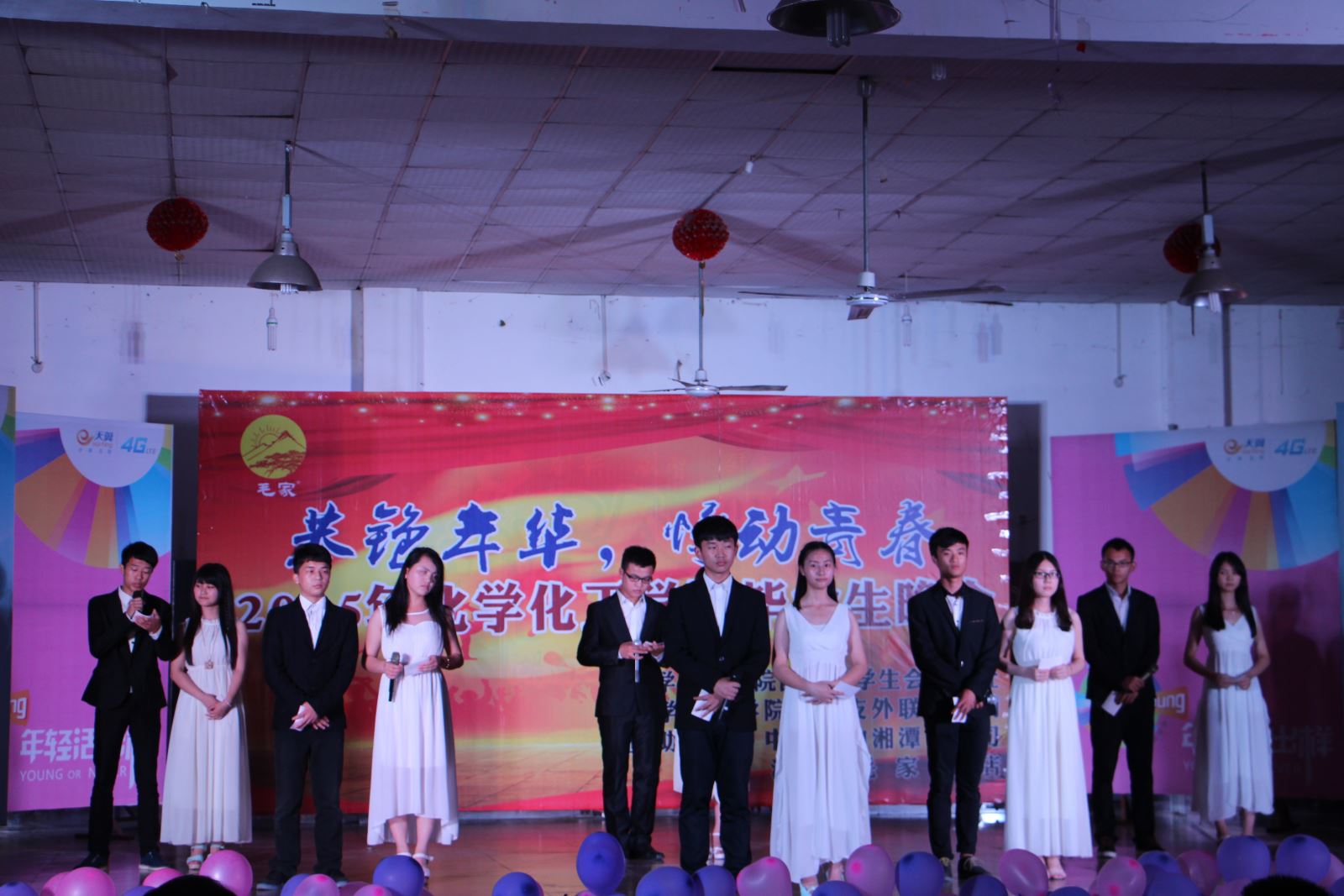 5月31日晚7点,化学化工公司2015届毕业生欢送晚会在北校区学海二食堂二楼隆重举行。化学化工公司经理邓继勇、党总支书记胡爱钦、副书记张建国及全体学办老师出席了本次晚会,到场的还有其他兄弟院部的老师和主席团成员。晚会现场人声鼎沸,热闹非凡。