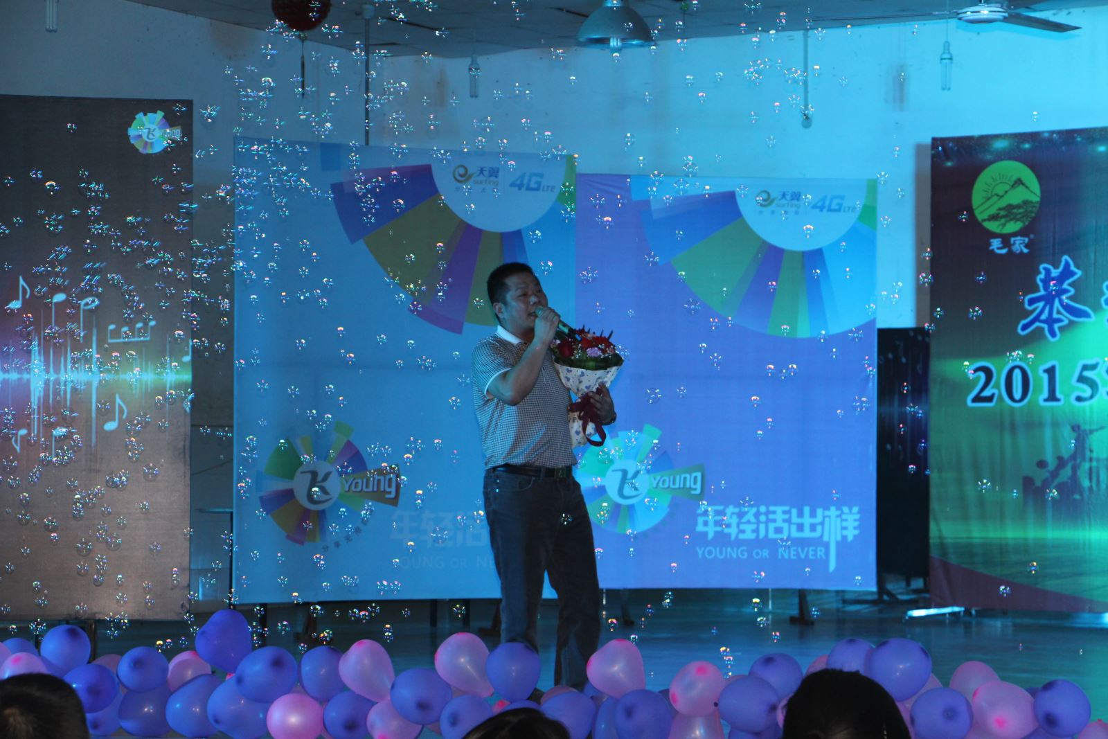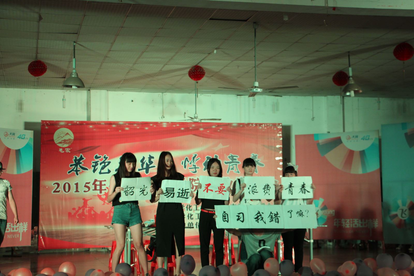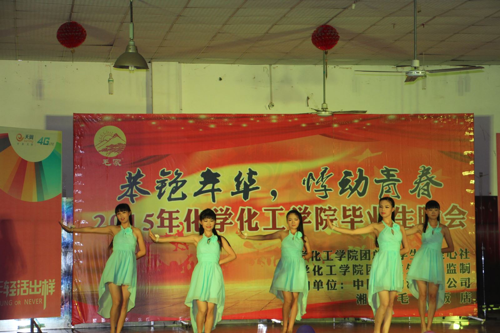 胡爱钦上台致开幕词,他充分肯定了2011级同学四年来取得的成绩,并祝愿毕业生们在未来的工作中步步高升、一帆风顺。邓继勇上台致词并献唱一首《等你等了那么久》,引发台下阵阵喝彩,再次点燃现场气氛。