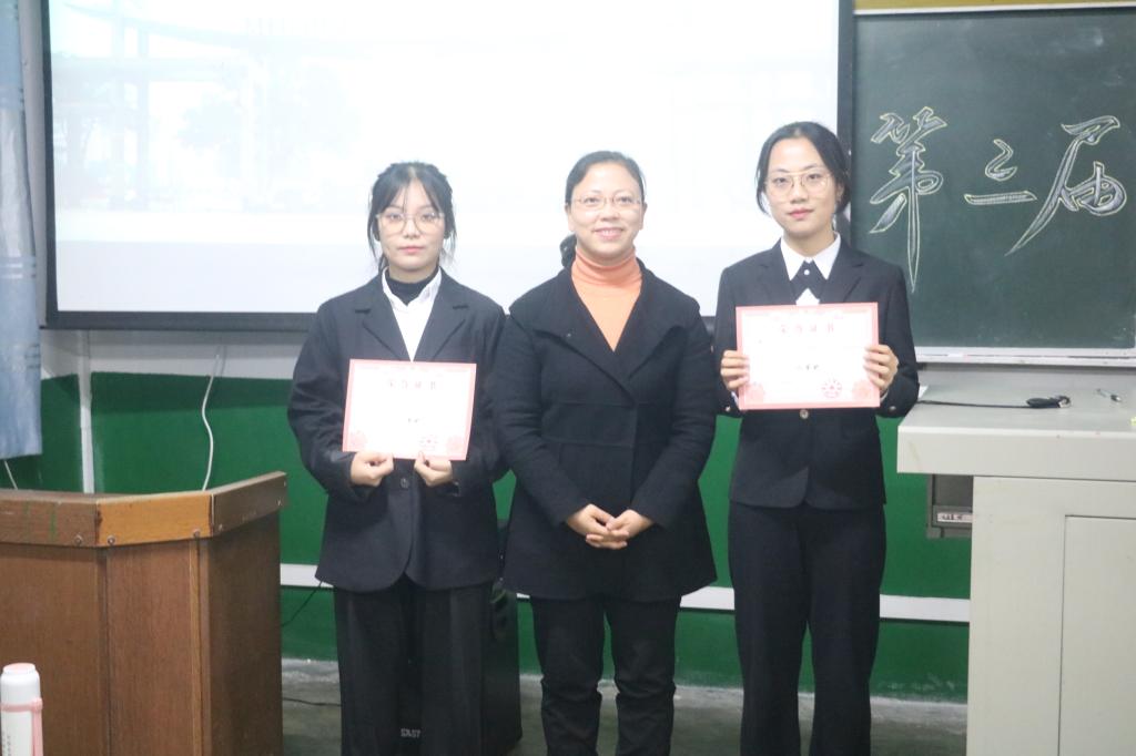 比赛开始前,湖南省第26届普通高校老员工英语演讲比赛非专业组个人一等奖获得者曾艳霞分享了她英语学习以及演讲技巧的经验,强调不断突破自我、持续坚持练习对于提升英语演讲水平的重要意义。比赛点评环节,王伟刚老师用双语鼓励大家要继续努力学习英语,夯实基础,不断提升英语水平。李艳红和陈镇热情祝贺比赛的成功举办,鼓励同学们学好英语,践行“文明礼仪、知行合一”的要求。