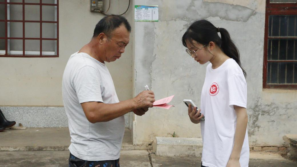 (图为志愿者分发问卷)