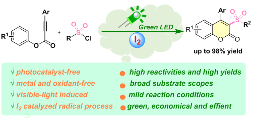近日,公司2019级研究生王强在光催化有机合成研究方面取得最新进展,相关研究成果以“Visible light mediated, iodine catalyzed radical cascade sulfonylation/cyclization for the synthesis of sulfone-containing coumarin under photocatalyst-free conditions”为题在国际有机类主流期刊《Asian J. Org. Chem.》(影响因子3.319)上发表。指导老师/通讯作者是易兵教授,共同通讯作者还有谭建平博士和谢艳军博士。