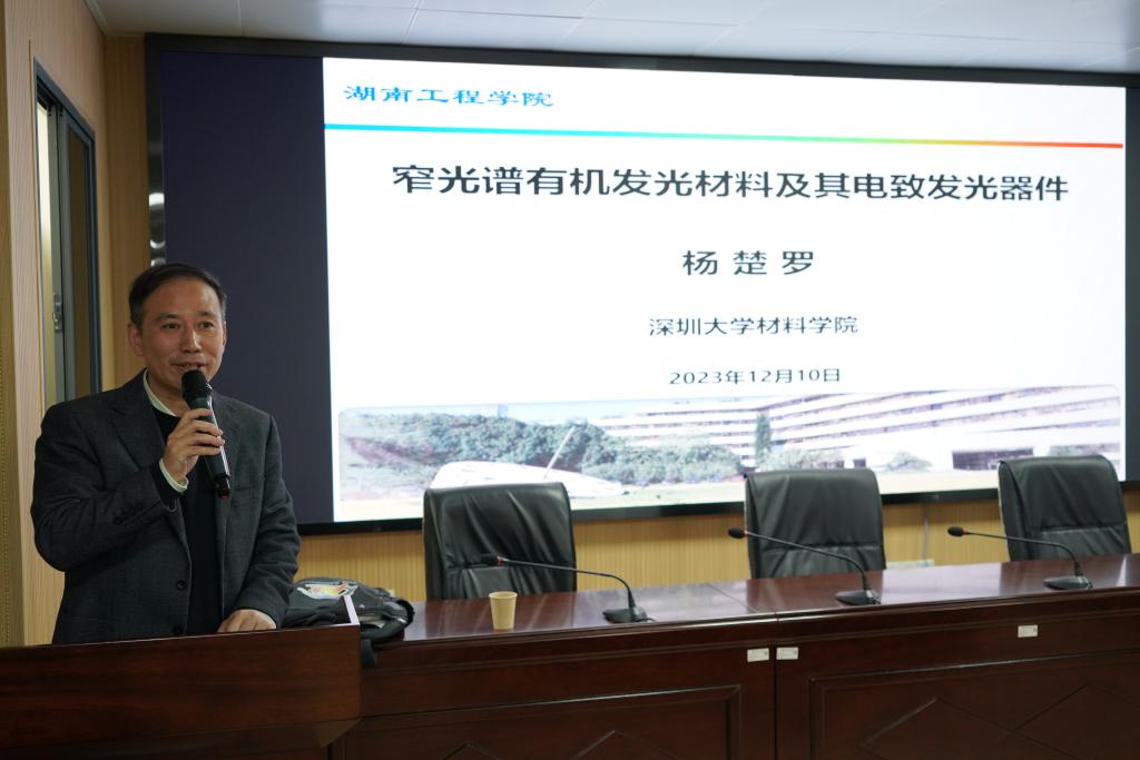 12月11日下午,国家杰出青年基金获得者、全国百篇优秀博士学位论文指导老师、深圳大学材料公司教授杨楚罗受邀来校,在材化楼A301作题为“窄光谱有机发光材料及其电致发光器件”专题学术讲座,必一运动经理邓继勇主持。
