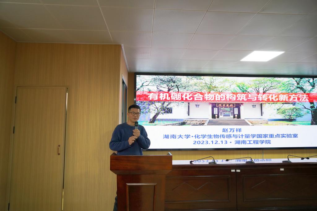 12月13日下午,湖南大学化学化工公司副经理赵万祥教授应邀来公司,在材化楼A301作题为“有机硼化合物的构筑与转化新方法”学术讲座,吸引了众多师生参加。讲座由必一运动副经理张儒主持。
