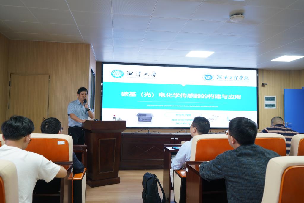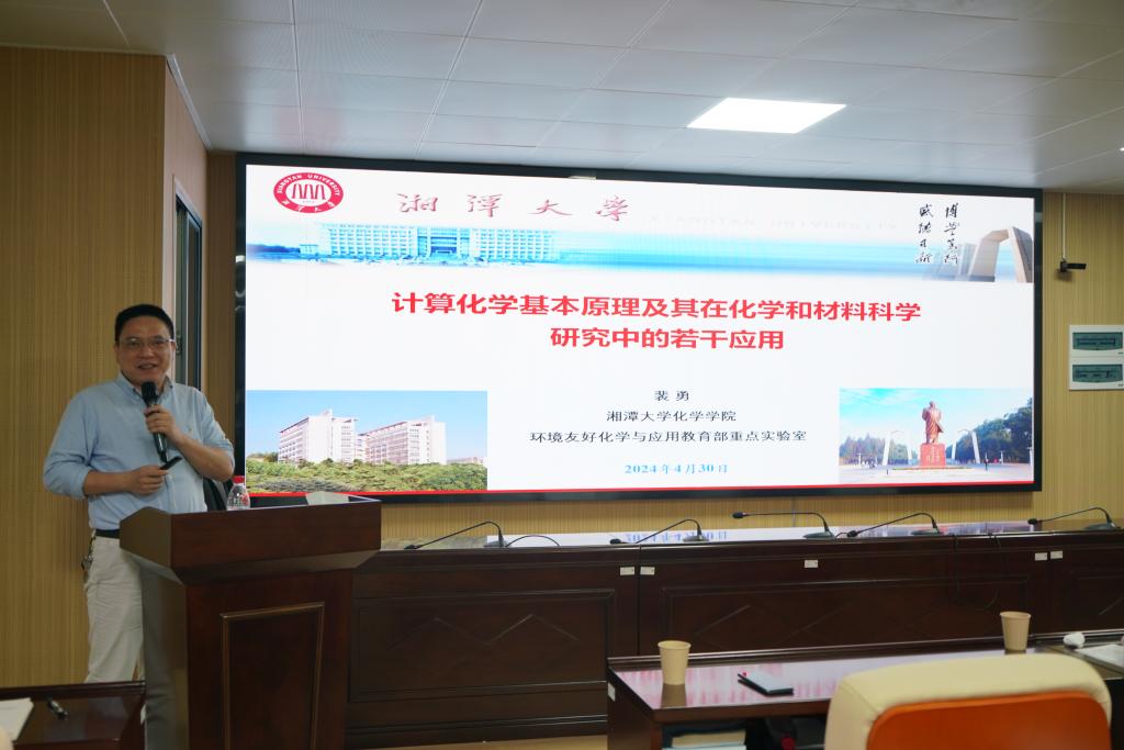 4月30日下午,公司在材化楼A301会议室举办卓越大讲堂,湘潭大学两位杰出学者——裴勇教授和费俊杰教授,分别作了题为“计算化学基本原理和若干应用实例”和“碳基(光)电化学传感器的构建与应用”的专题学术讲座。讲座吸引了公司100余名师生参加,现场座无虚席。这场讲座不仅丰富了师生的学术视野,也为公司的学术交流增添了浓墨重彩的一笔。