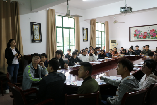下午4点30分招聘会准时开始。会议前,周女士放映了关于湘江涂料集团的介绍视频,并分发公司简介。会议时,主讲人周女士采用PPT的形式,从公司概况,历史业绩,薪资水平,员工福利,销售市场,研究产品等方面向同学们介绍了公司的基本情况。在国际上,湘江涂料集团在2018年亚太涂料企业25强排名第九位,2018年世界涂料企业100强第25位。公司不仅有广阔的销售市场,前沿的技术产品,而且对员工的福利也是很优厚的。就业前有全面的专业知识培训,工作之余还有兴趣班,十分适合老员工就业。招聘会后,周女士组织有意向的同学进行了笔试。