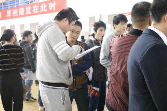 本次见面会有300多个用人单位前来招聘公司应届毕业生,近千名同学参加了此次见面会。上午九点,招聘会如期而至,同学们手持精心准备的简历排队有序地进入会场,人山人海,用人单位方布置好自己的会场为求职者解答疑难,毕业生也都满怀信心,穿梭于人海中,选择自己心仪的公司投放简历,积极与用人单位代表交流,就公司前景、应聘岗位、行业前景、专业是否对口、地域分布等问题进一步进行了解。也有些14级的员工来到用人单位处咨询学习,提前感受就业的紧张气氛。大多数用人单位也积极地拿着自己的宣传单和协议耐心地为同学们介绍,此次招聘会持续了将近4个小时。