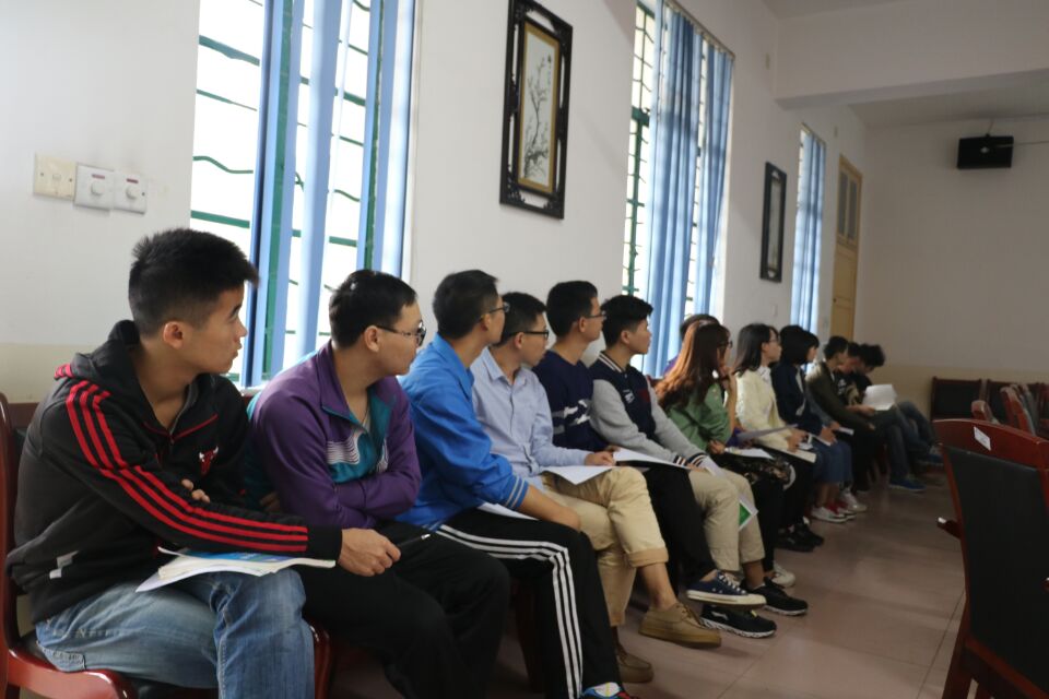 招聘会由该公司员工进行主讲,她分别从该公司的发展史,在职员工,地理位置,拥有的客户和发展前景等方面对该公司进行了详细解说。随后主讲人向同学们介绍了该公司的薪资待遇、食堂条件与宿舍条件,并表示公司将会给实习生进行两到六个月的培训。紧接着,同学们向主讲人提出了自己的看法和疑问并相继得到了满意的回答。在历时一个小时的招聘会后,有意愿的毕业生投放了自己的简历并与公司负责人进行了交谈,其中有不少大三员工也表示希望不久后能进该公司实习,为以后的就业争取更多机会。在此次招聘会中,招聘者与应聘者们相谈甚欢,当场气氛也特别热闹。