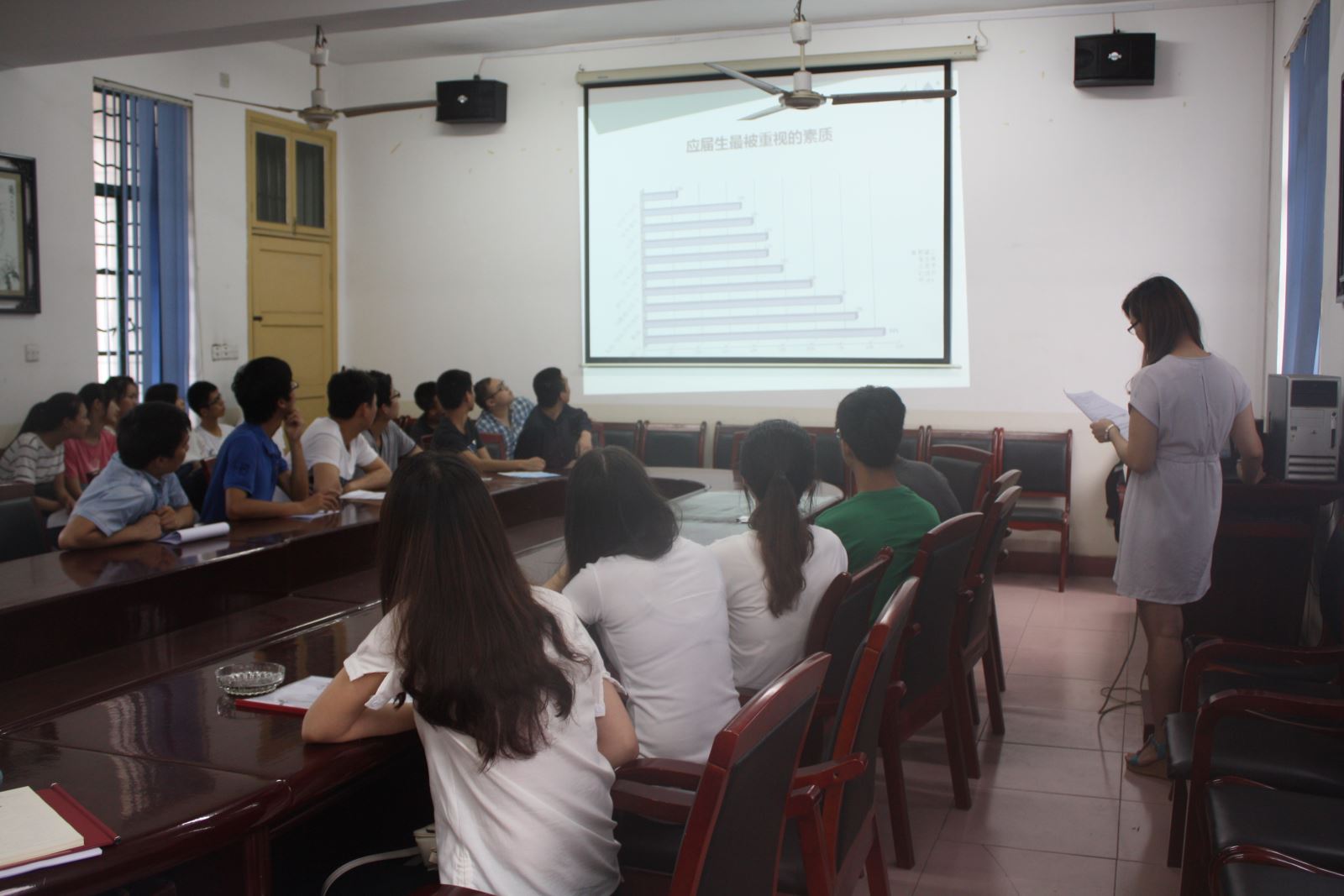 会议开始,德美公司员工通过ppt的展示及讲解,向应聘同学介绍了德美公司的基本情况。德美公司是以生产纺织印染助剂为主,兼营其他精细化学品的股份制公司,公司的管理模式、员工奖励机制方面走在同行业的前列。