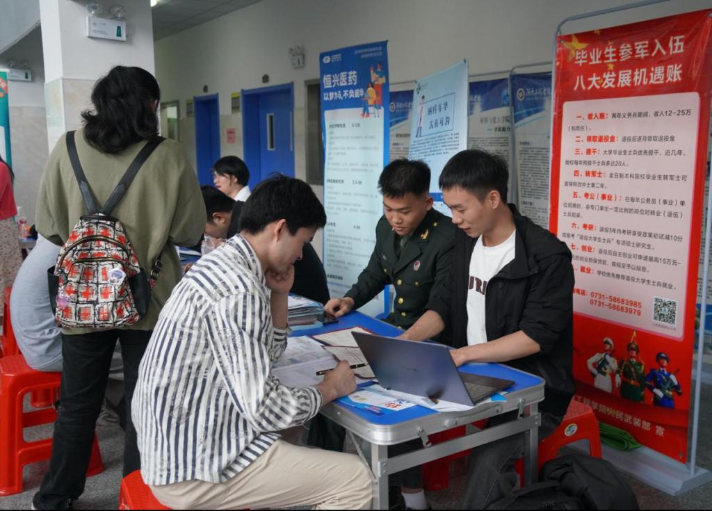 招聘会场还特别设置了征兵宣传专区,介绍征兵政策,动员更多毕业生参军入伍,共发放100余份征兵宣传手册。