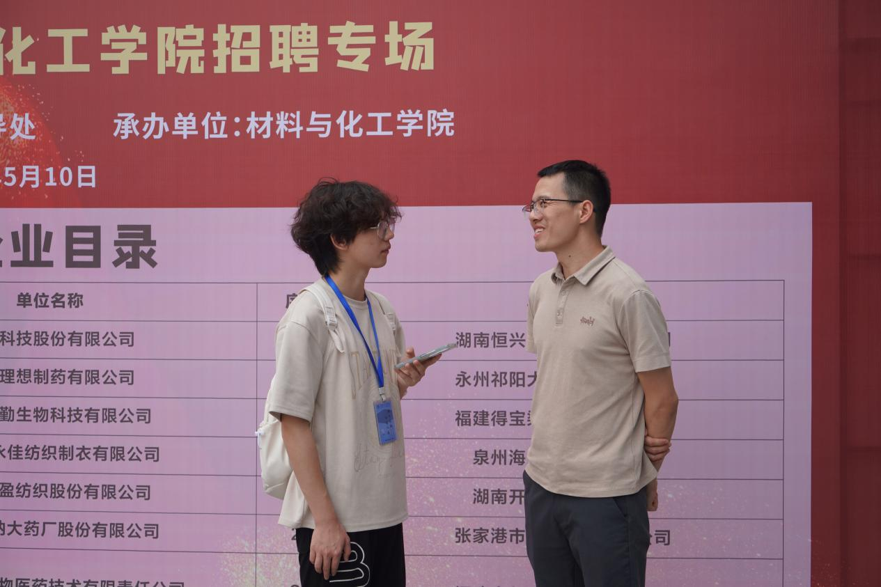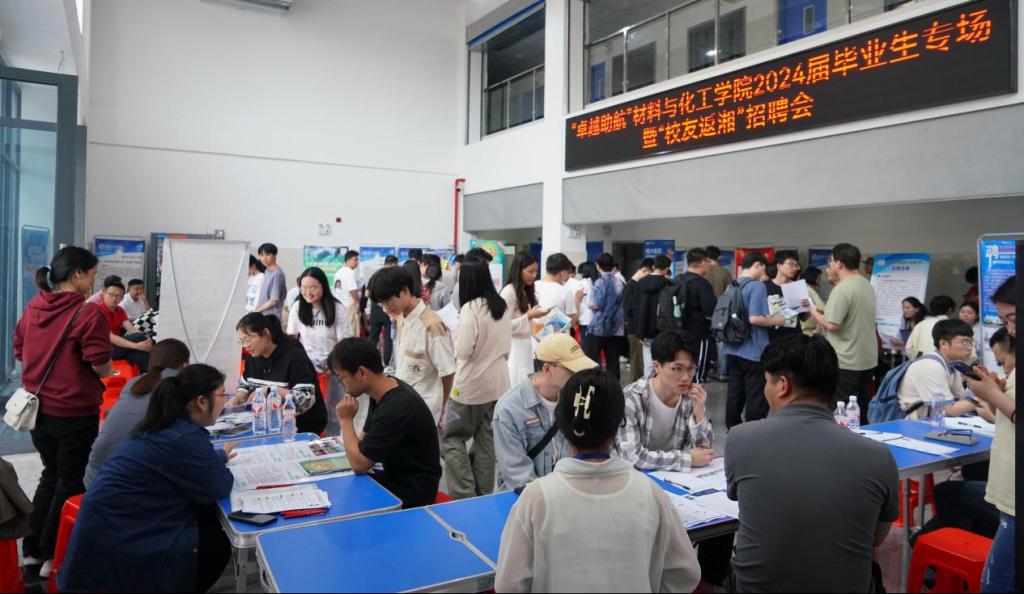 5月10日,公司“卓越助航”2024届毕业生专场暨“员工返湘”招聘会活动在材化楼大厅举行。来校招聘的员工企业佛山致兴纺织服装有限公司和广东创新精细工实业有限公司、湖南一格制药有限公司等25家用人单位,为公司毕业学子提供专业相关岗位100余个。