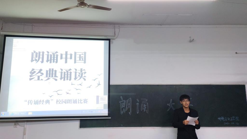 为诠释中华优秀文化内涵,彰显中华语言文化魅力,弘扬中国精神,10月12日晚7点,必一运动在四教102教室举行了“朗诵中国”经典诵读大赛。