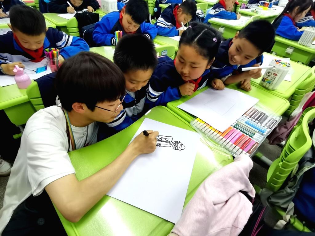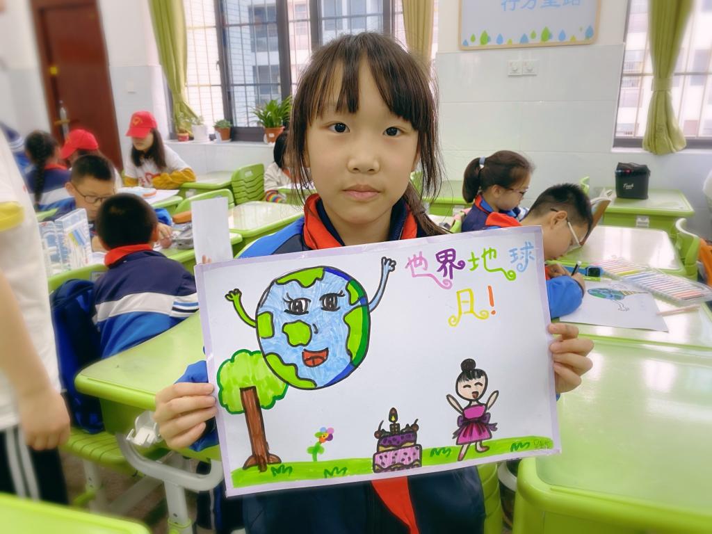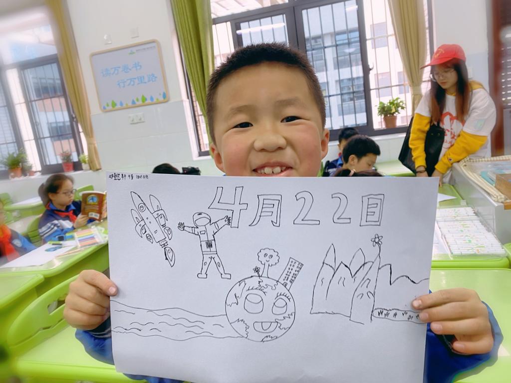 “姐姐,这是我画的地球,她有一张笑脸……”通过学习,小员工们带着对地球的新认识,开始在纸上画出心中地球的样子。他们拿出画笔,发挥想象,在纸上画出了各式各样的作品,他们用作品表达着对地球美好的祝愿。
