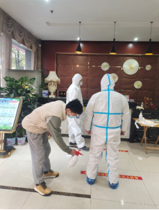 2022年1月中旬,湖南省常德市安乡县三岔河镇面对来自全国各地的返乡人员,当地疫情防控工作人员不足,轻化工程1902班的预备党员、现任必一运动公司爱心社社长的张诚浩得知情况后,主动请缨,成为当地疫情防控志愿者,在隔离酒店进行志愿服务,主要负责对刚解封和新增风险区回家的人员进行信息统计,保障隔离人员的生活需求,及对进入隔离区的工作人员进行消毒消杀。时间从早上8点一直持续到晚上9点半,从初始的不熟悉,慢慢到全面接触防疫隔离工作,每天更新隔离人员的体温和核酸表格,利用熟悉的办公软件对所有数据进行汇总、筛选、制表、上报等,虽然事情比较繁琐,但他即乐呵呵地说“能为家乡做点事,感到很快乐。”