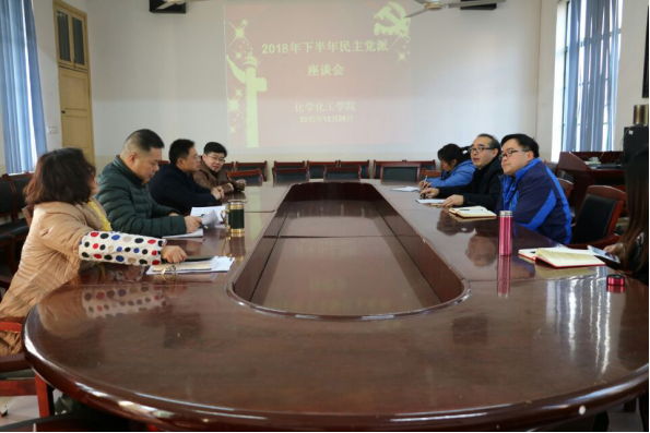 2018年12月25日下午化学化工公司党总支部在四教306会议室举行2018年下学期民主党派座谈会,进一步做好公司统战工作。公司党总支部书记胡爱钦、总支委员副经理张何、总支委员黄塞金出席会议。