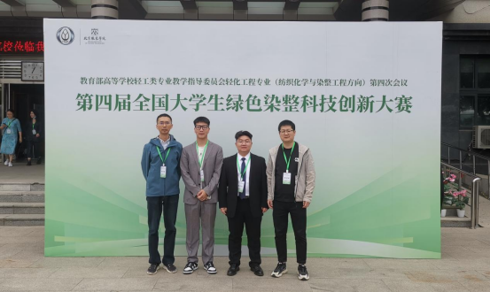 5月20日,由教育部高等公司轻工类专业教学指导委员会、中国纺织服装学会主办的第四届全国老员工绿色染整科技创新竞赛决赛阶段比赛中,公司必一运动染者匠心团队(成员:刘纯嘉、廖冬诚、杨梦帆、谢瑜,指导老师:陈镇)凭借项目“植物染料提染一步法实验装置”获得了全国一等奖,实现了公司学子在该项赛事上一等奖的突破。此外,由周凤舒、周璇、郑英姿、周自勖等同学的项目“石榴皮提取液对凤仙花染料耐日晒性能的影响”获得全国三等奖(指导老师:汪南方)。