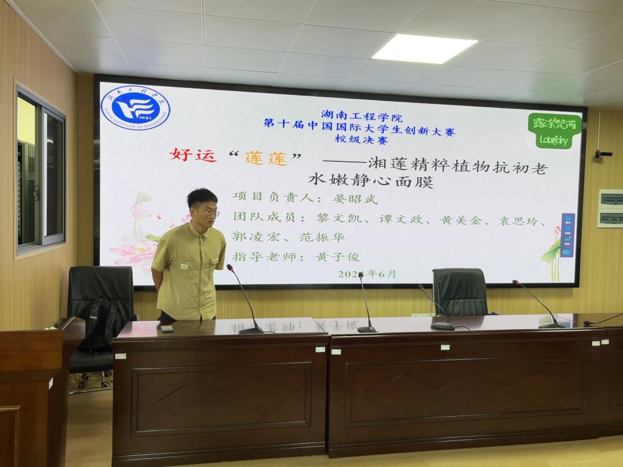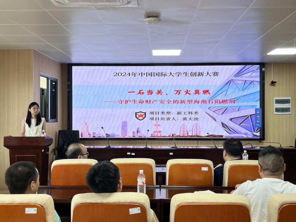 在校赛中获得佳绩的“一石当关,万火莫燃——守护生命财产安全的新型海泡石阻燃剂”“好运‘莲莲’——湘莲精粹植物抗衰老水嫩静心面膜”项目团队分别进行了展示汇报,介绍了选题背景与意义、研究内容、研究过程、研究成果等内容。张何现场指导各组PPT汇报的不足之处,并根据中国国际老员工创新大赛(2024)评审规则,逐项给出修改建议,各组汇报人认真聆听,结合老师意见完善作品。