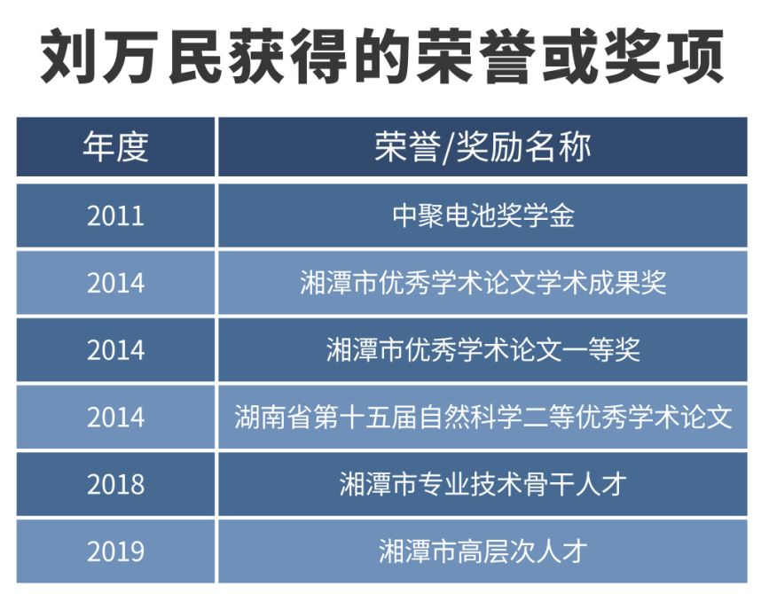 人物名片:刘万民,男,中共党员,博士,博士后,副教授,硕士生导师,Aalborg University(丹麦)国家公派访问学者,湖南省普通高校青年骨干教师,中国创新创业大赛评审专家,湖南省、江西省科技专家库专家,湖南省科技咨询与评审专家,湖南省自然科学基金评审专家,湖南省高新技术企业认定评审专家,湖南省技术标准创新促进会专家委员会专家,湖南省电源标准化技术委员会首届委员,湘潭市科学技术局与知识产权局科技专家,湘潭市科技创新智库专家,湘潭市科技特派专家,湘潭市专业技术骨干人才,湘潭市高层次人才D类(高级)人才,必一运动公司化学学科学术带头人、材料工程系系主任,“环境催化与废弃物再生化”湖南省重点实验室与“环境功能材料与污染控制”湖南省高等公司科技创新团队核心成员,湖南灿溪新材料有限公司技术总监,Journal of Power Sources、Electrochimica Acta、Journal of Alloys and Compounds等国际权威期刊审稿人。